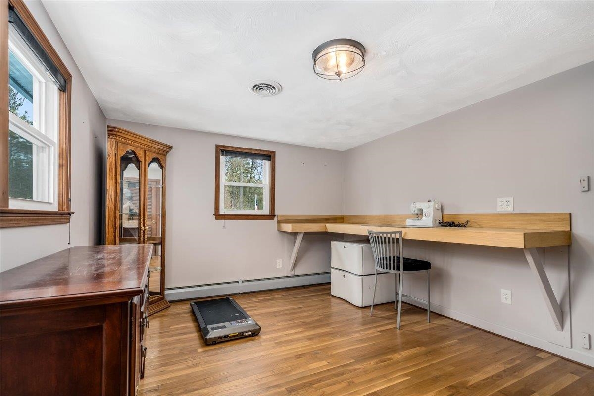 Welcome to this expansive raised-ranch home that offers a blend of privacy & convenience.This residence provides a secluded setting on a flat 1.28-acre lot at the end of a cul-de-sac.The home encompasses 2,657 of finished square footage, with 4 bedrooms & 3 bathrooms.The kitchen is in the heart of the home with a massive walk-in pantry, stainless steel appliances, dual dishwasher, large 6-burner range & ample counterspace.Off the kitchen is an all-season room with vaulted ceilings, exposed beams, & various sliders that open up to a quaint porch & multi-tier deck, enhancing indoor-outdoor living.The living room offers hardwood floors, an abundance of natural light pouring in through the bay window & a cozy fireplace.In its own wing of the home is the primary bedroom, with 3/4 bathroom ensuite & walk-in closet.The main floor guest bathroom has been beautifully renovated top to bottom, with a beautiful glass shower.There are three additional bedrooms on the main floor.The partially finished basement offers even more living space; suitable for a family room, home gym, or entertaining space.Minutes to the elementary school, police & fire stations.Close proximity to 93 & the Massachusetts border.Other Features include; central AC, two gas fireplaces, large driveway with ample parking, New roof/gable vents, New Siding, New shutters, Newer windows, Newer front walkway, New garage door openers, HVAC recently serviced, Septic just pumped. OPEN HOUSE Saturday March 8, 11:00am-1:00pm